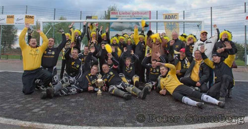 Die ganze Mannschaft zeigte eine überragende Leistung wobei sicherlich O.Sinn als vierfacher Torschütze und unser Torhüter O.Potthoff, der sich sich mit 4 (Vier) gehaltenen Elfmetern in einem Endspiel fast sein eigenes Denkmal gesetzt hat, besonders zu erwähnen sind.